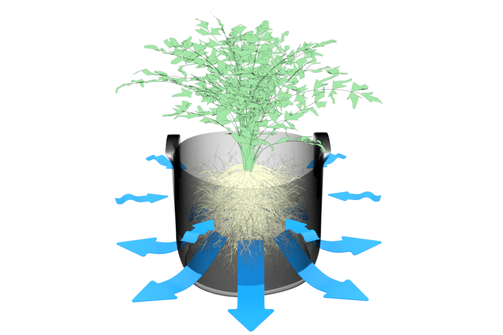 The breathable fabric also allows oxygen to penetrate the root zone from the sides. This aeration promotes the proliferation of beneficial microbes and creates a healthy rhizosphere (= root-rich soil).
